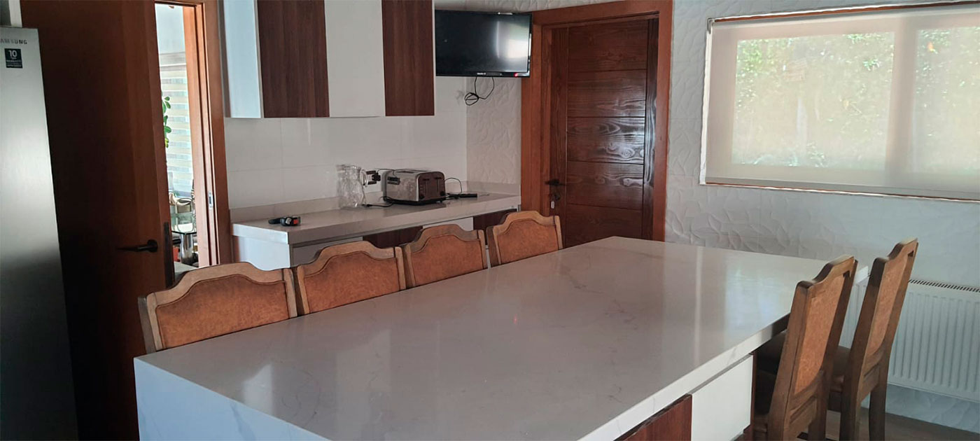 La casa de 192m2, ubicada en la zona lacustre de La Araucanía, es un reflejo del compromiso de Abarzúa Constructora con la calidad, eficiencia y nuestros altos estándares en diseño y arquitectura. Construida en un 100% por paneles SIP en interior y exterior, esta vivienda de 1 pisos cuenta con 4 amplias habitaciones, 3 baños y amplios espacios de descanso y recreación, creando un espacio ideal para la vida familiar. La construcción destaca por sus estructuras rígidas en marcos y ventanas, sus ventanas de PVC + termo panel, puertas enchapadas y el uso de porcelanatos en pisos, muros, cocina y baños logrando terminaciones del estándar de calidad que nos identifica como constructora. Además, la casa cuenta con aislación bajo radier y bajo cubierta AISLAPOL, envolvente térmico exterior + grano elastomerico y calefacción central con el fin de asegurar alta eficiencia energética, confort y ahorro a largo plazo para sus futuros residentes.