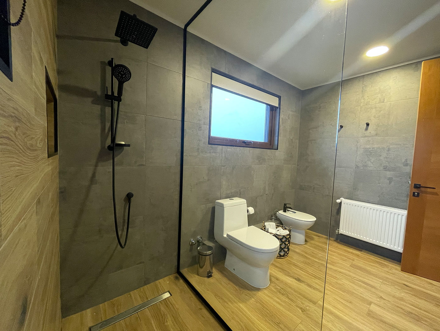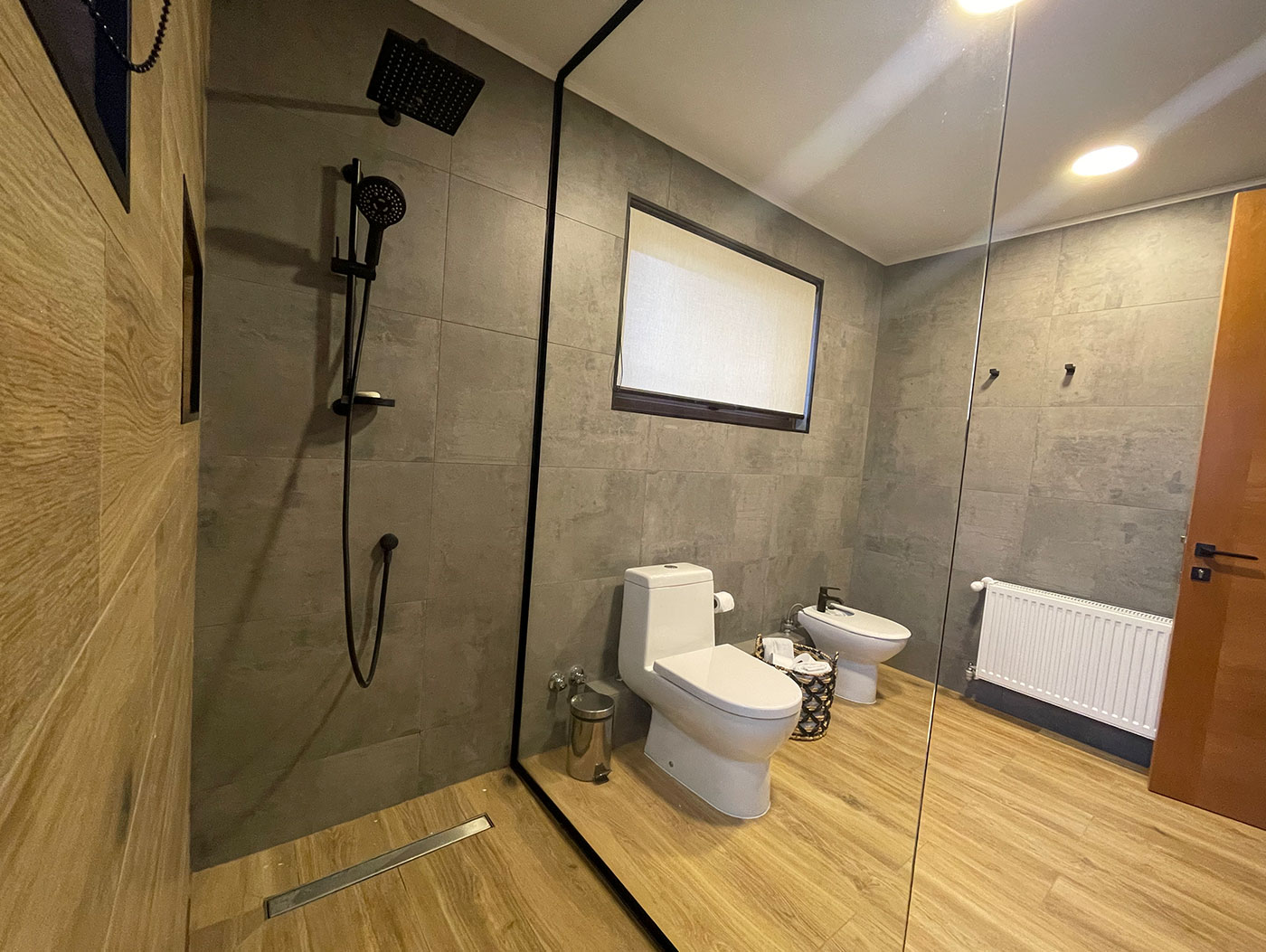 Desde el momento en que atraviesas las puertas de acceso y seguridad, sentirás la tranquilidad que proporciona su diseño meticuloso. Los revestimientos en madera nativa dan un toque de calidez y sofisticación, mientras que las estructuras metálicas robustas garantizan durabilidad a largo plazo. Con aislación térmica de primera calidad, disfrutarás de confort en cualquier estación del año. Los muros, radieres y cubiertas están construidos con materiales de alta calidad para asegurar una vida útil prolongada, destacándose el muro de hormigón a la vista que añade un aire contemporáneo.
